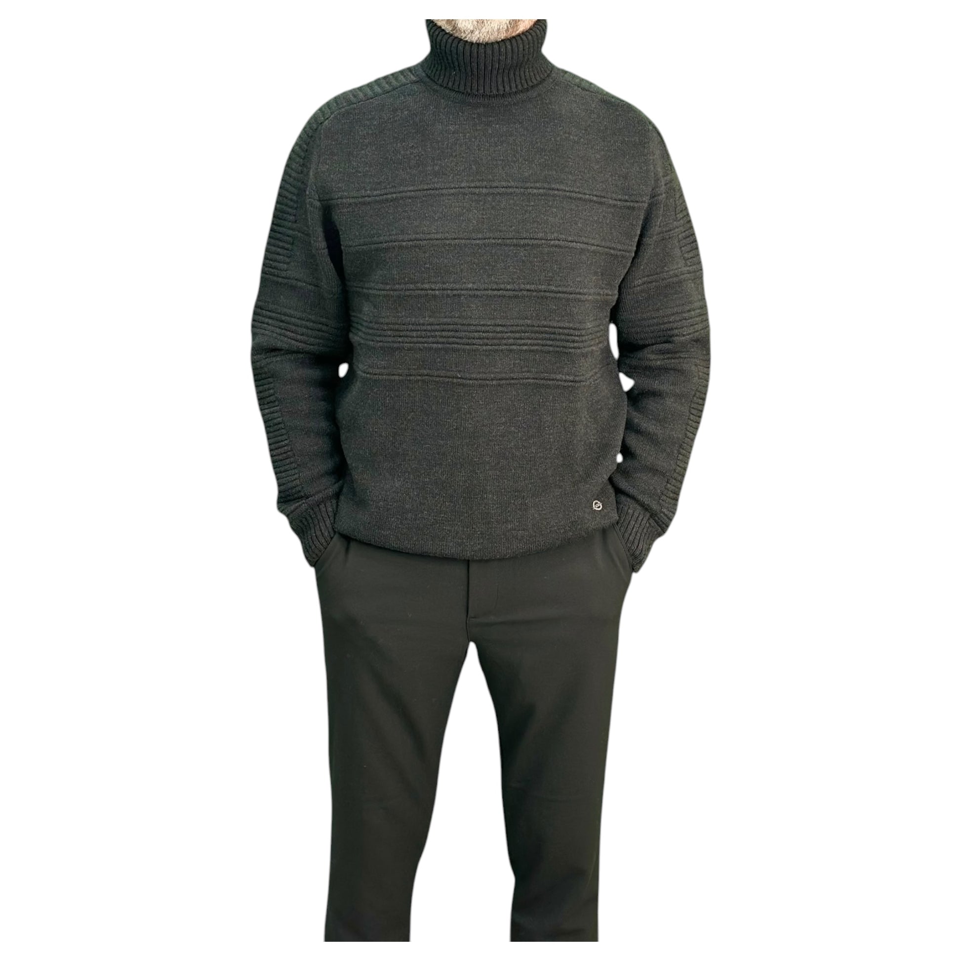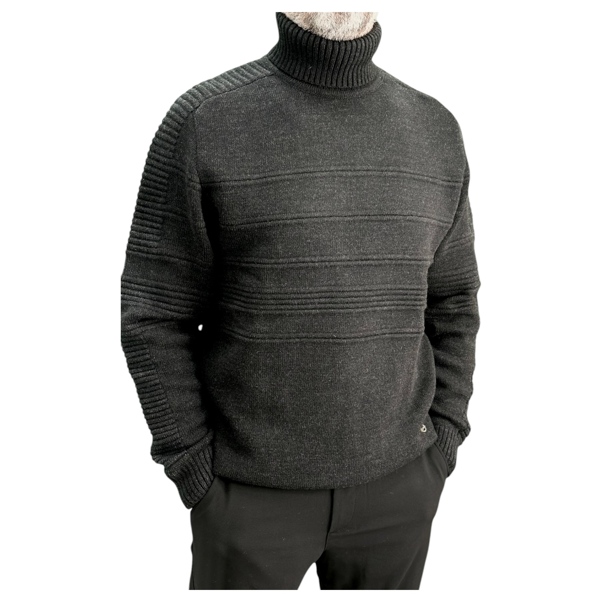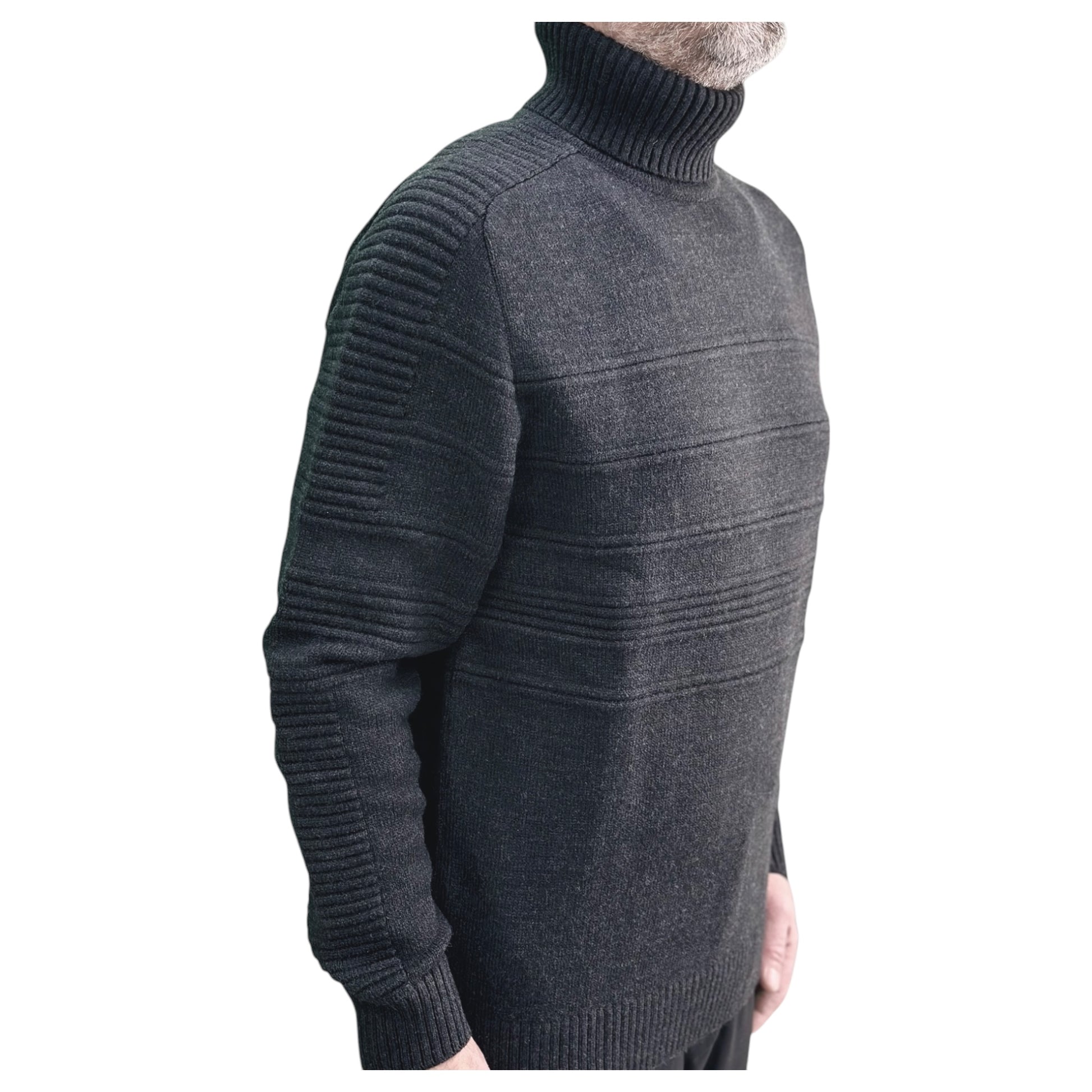 Dark Gray Men's Chunky Turtleneck Sweater -100% Real Wool