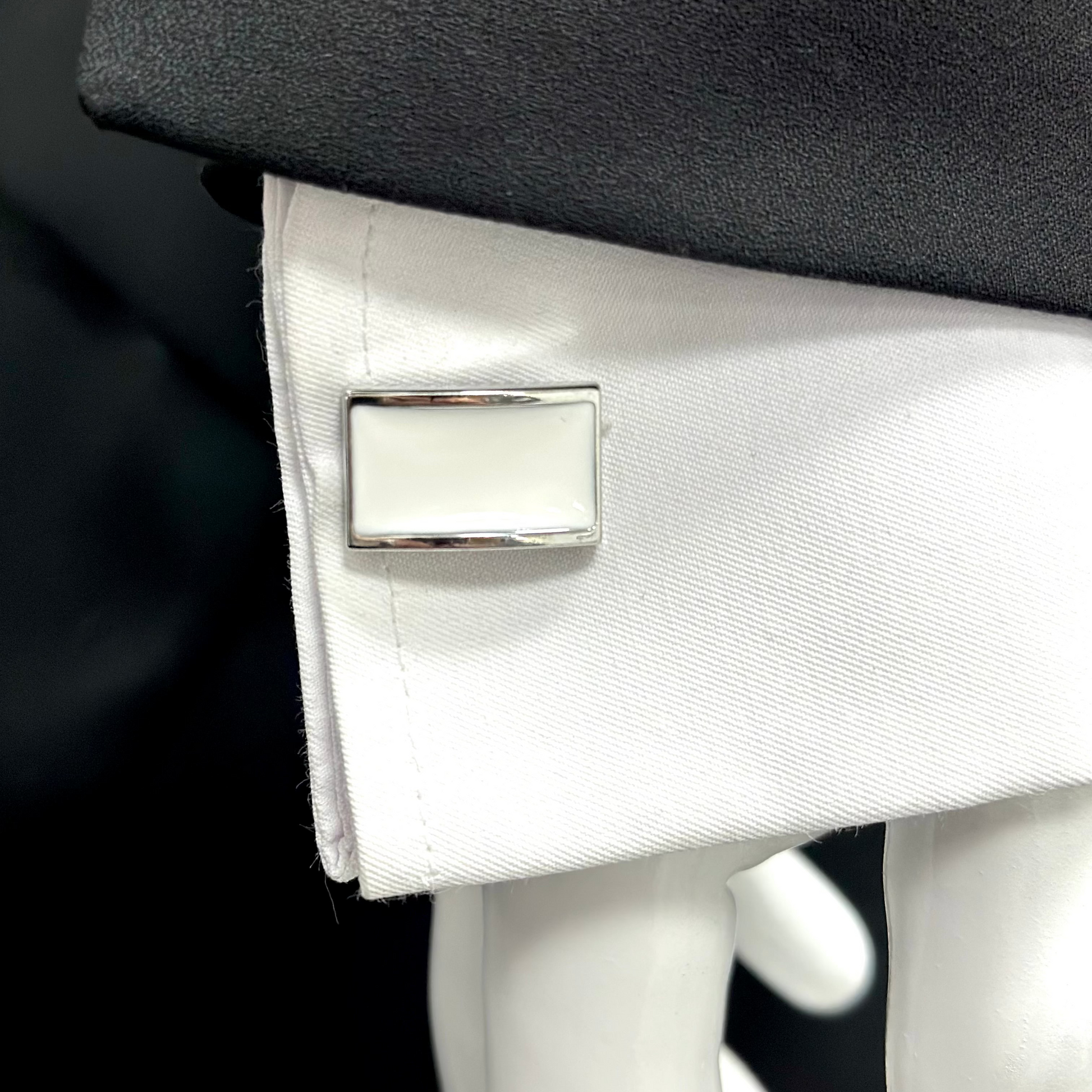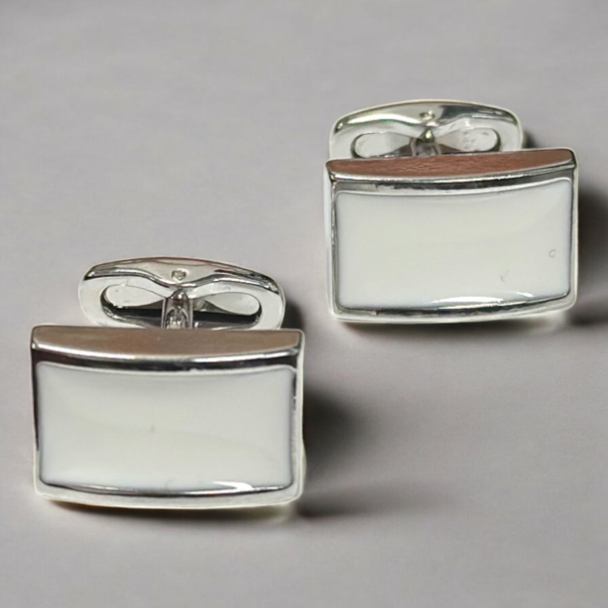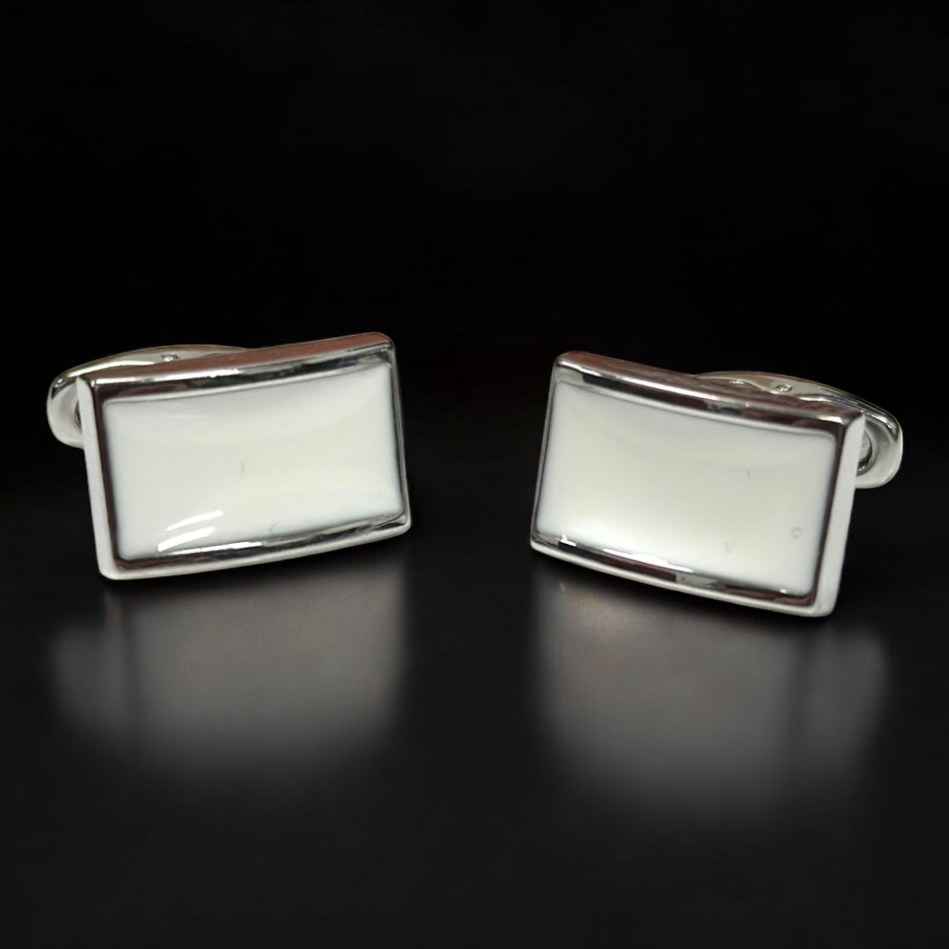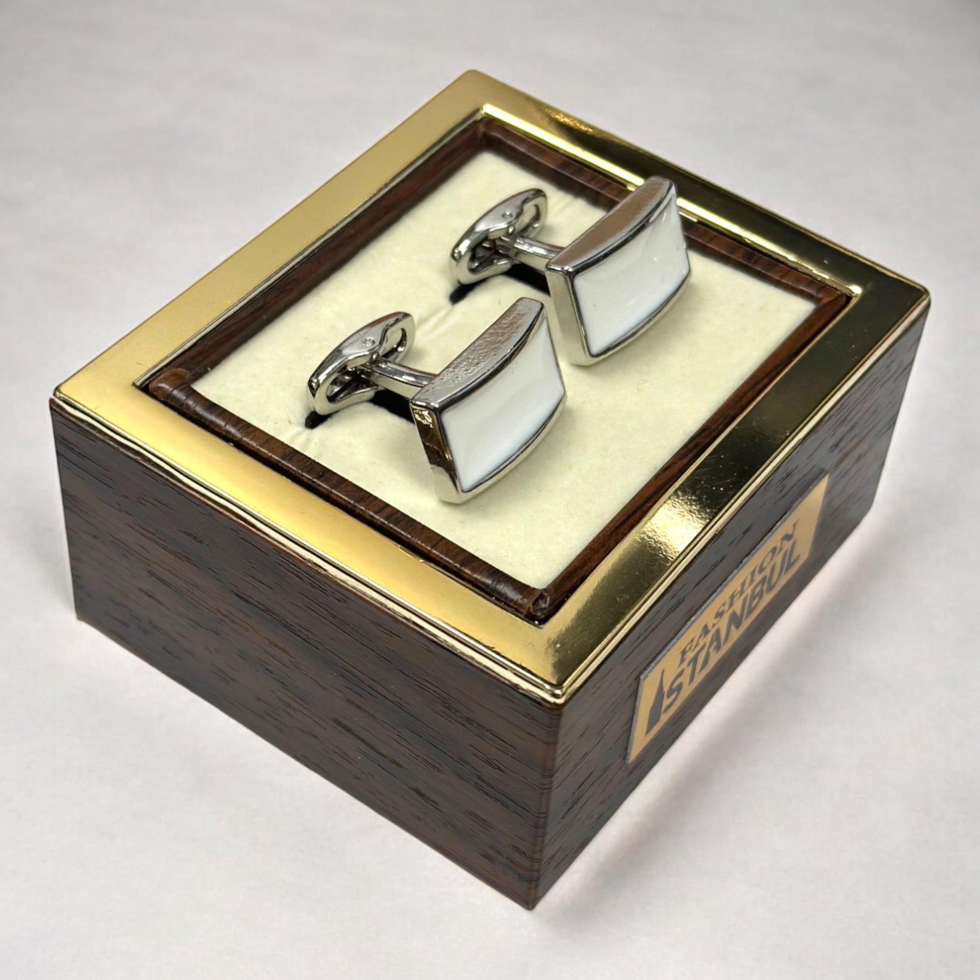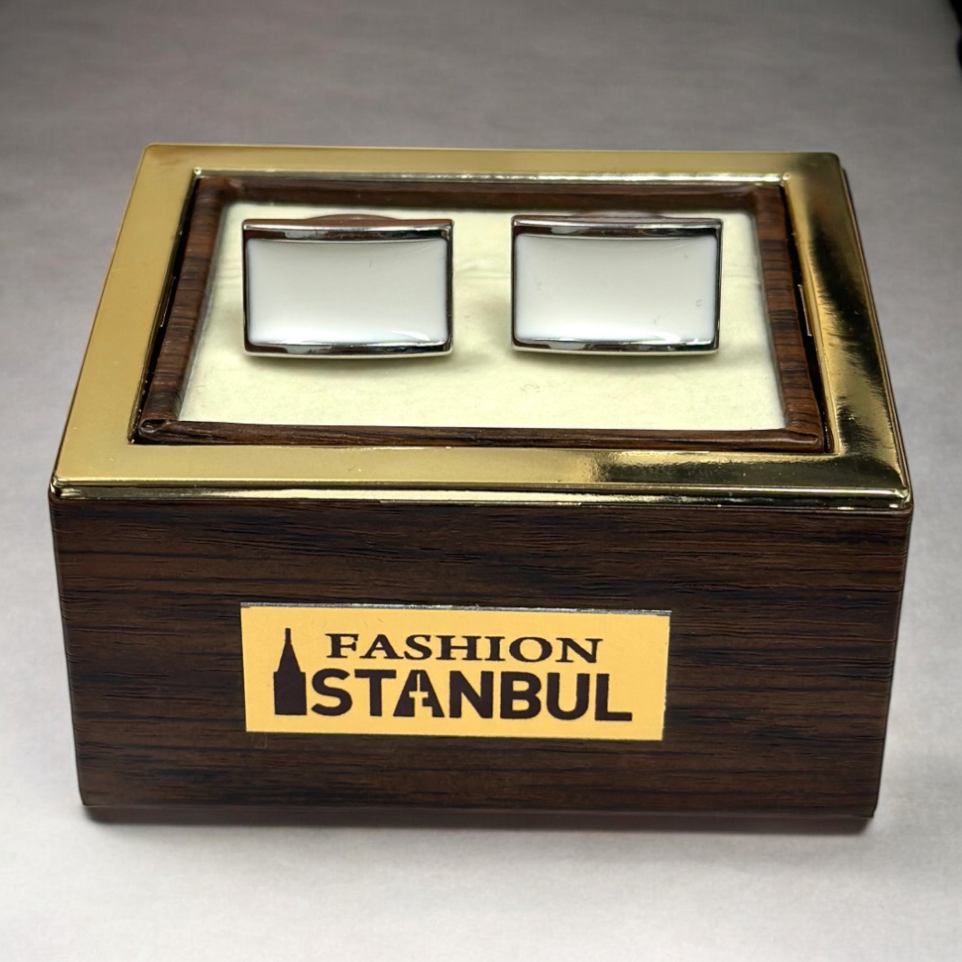 Rectangular Silver with White Interior - Istanbul Fashion Cufflinks - 68
