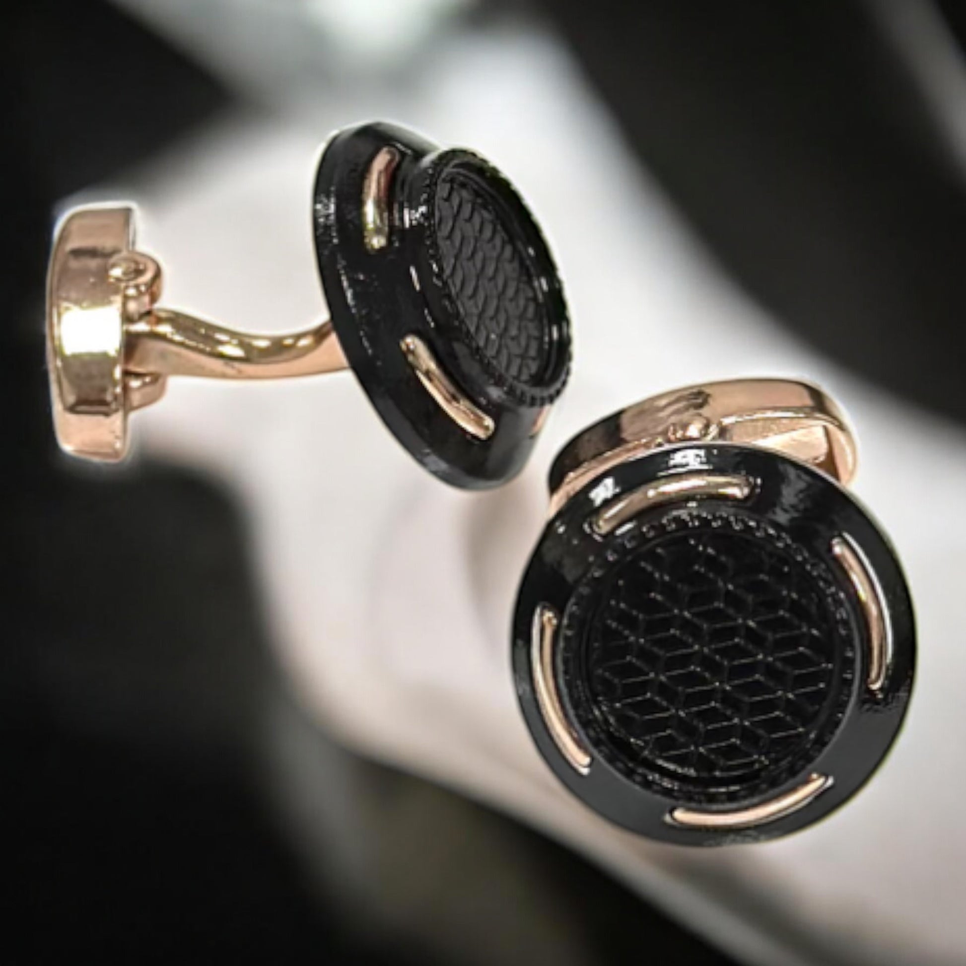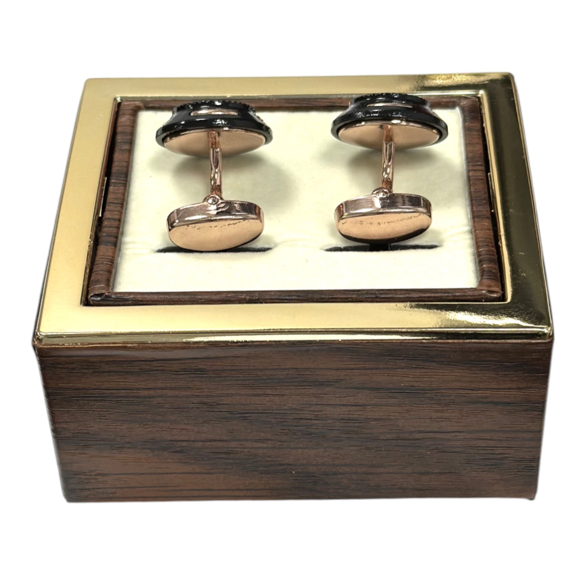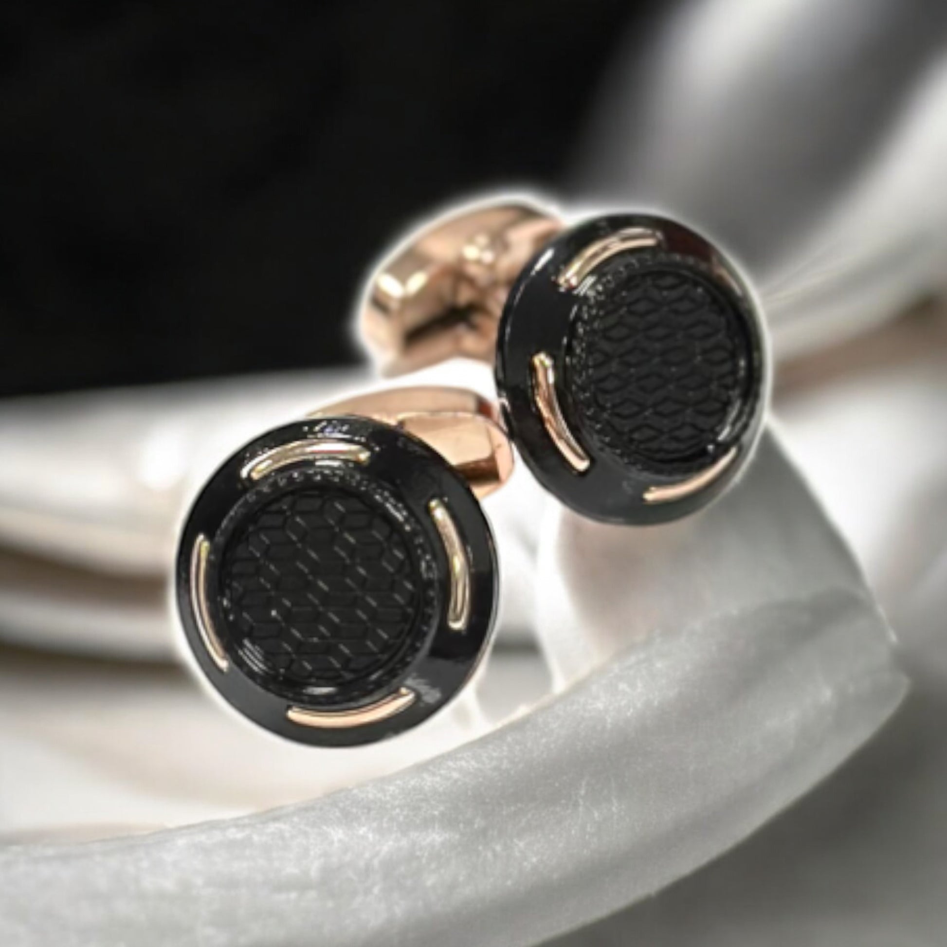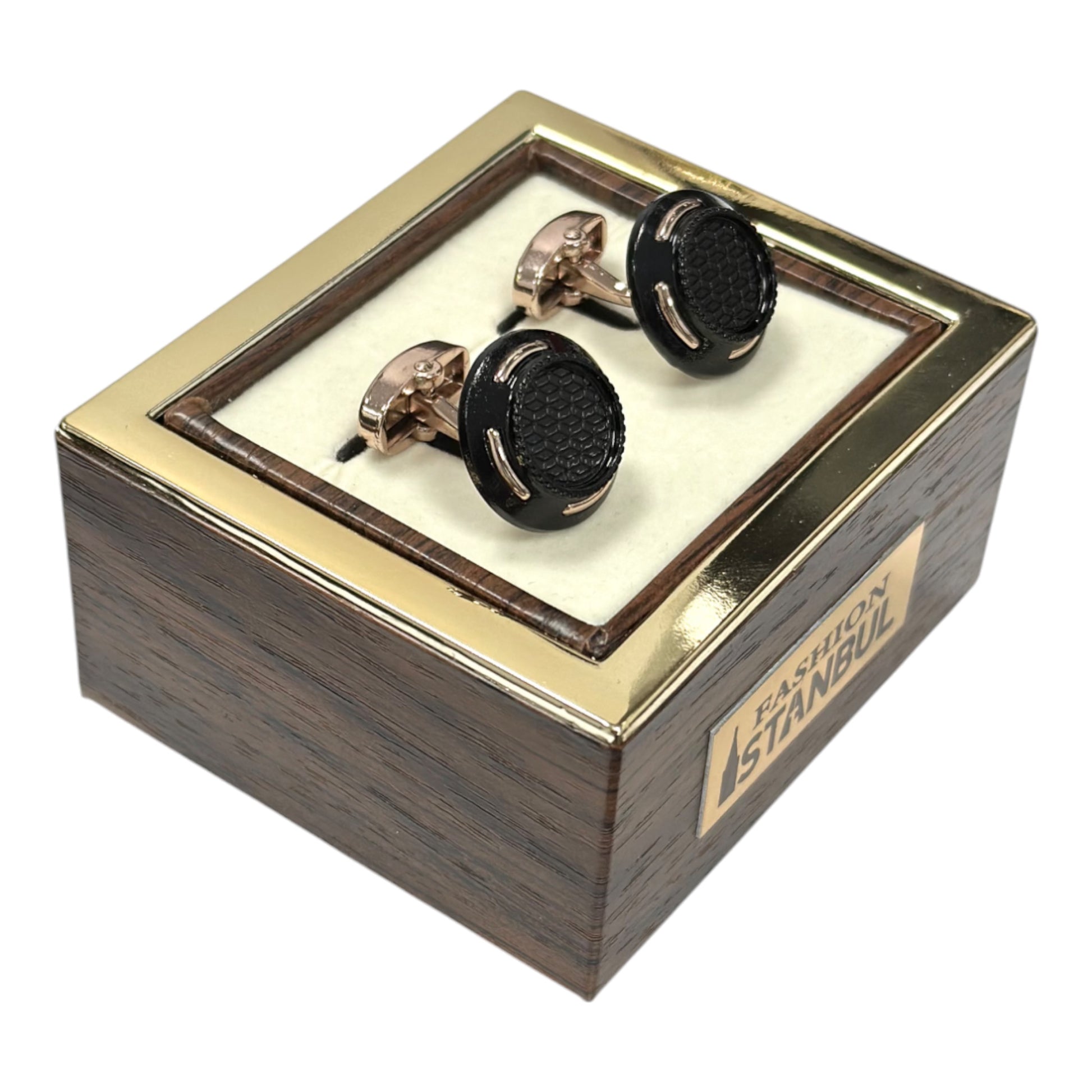 Round Black Matte and Shiny Rose Gold Finish - Istanbul Fashion Cufflinks - 47