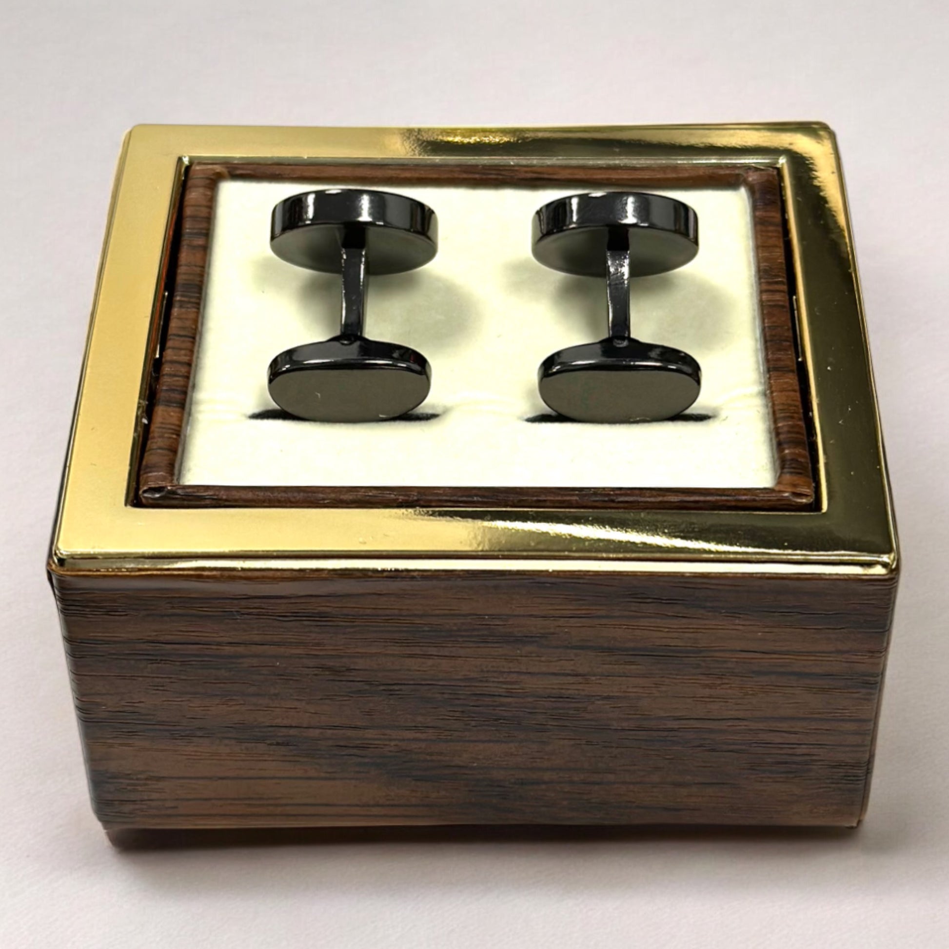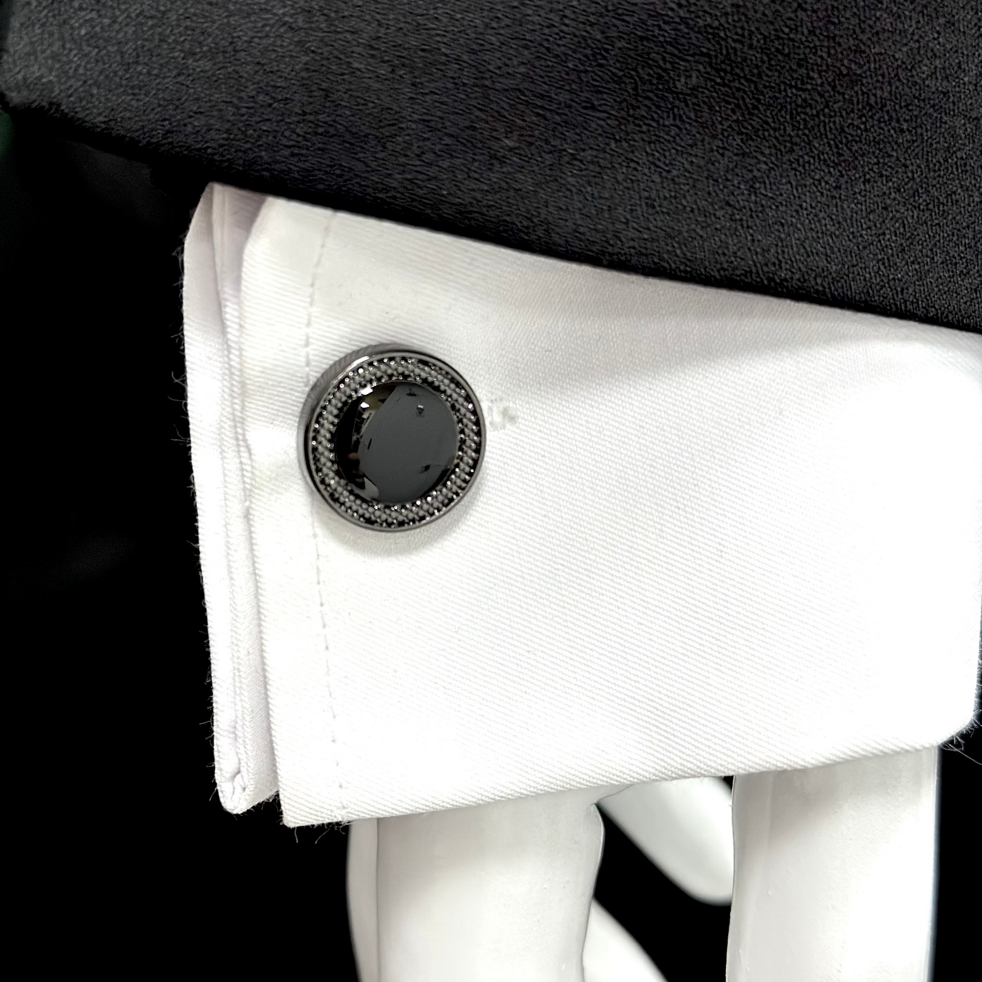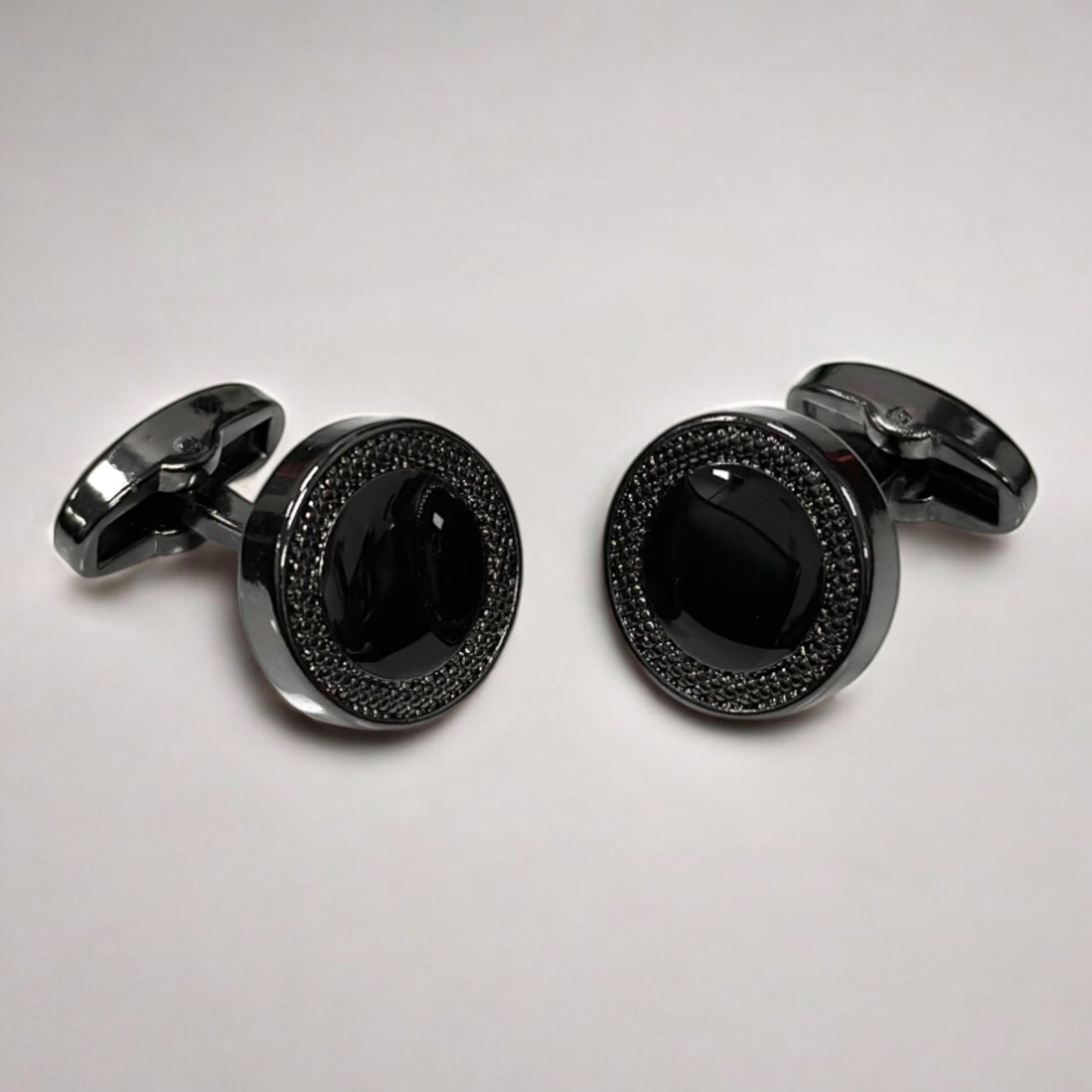 Round Chrome Black Contrasted with Dark Black - Istanbul Fashion Cufflinks - 65
